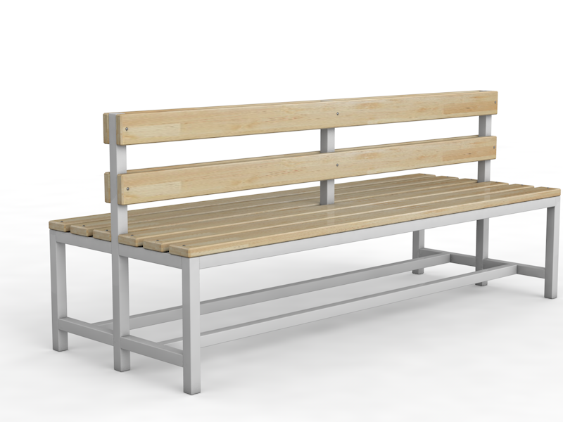 - Двухсторонняя конструкция: Скамейка имеет спинки с обеих сторон, что позволяет пользователям сидеть с любой стороны. Это особенно удобно в раздевалках, где может быть много людей.